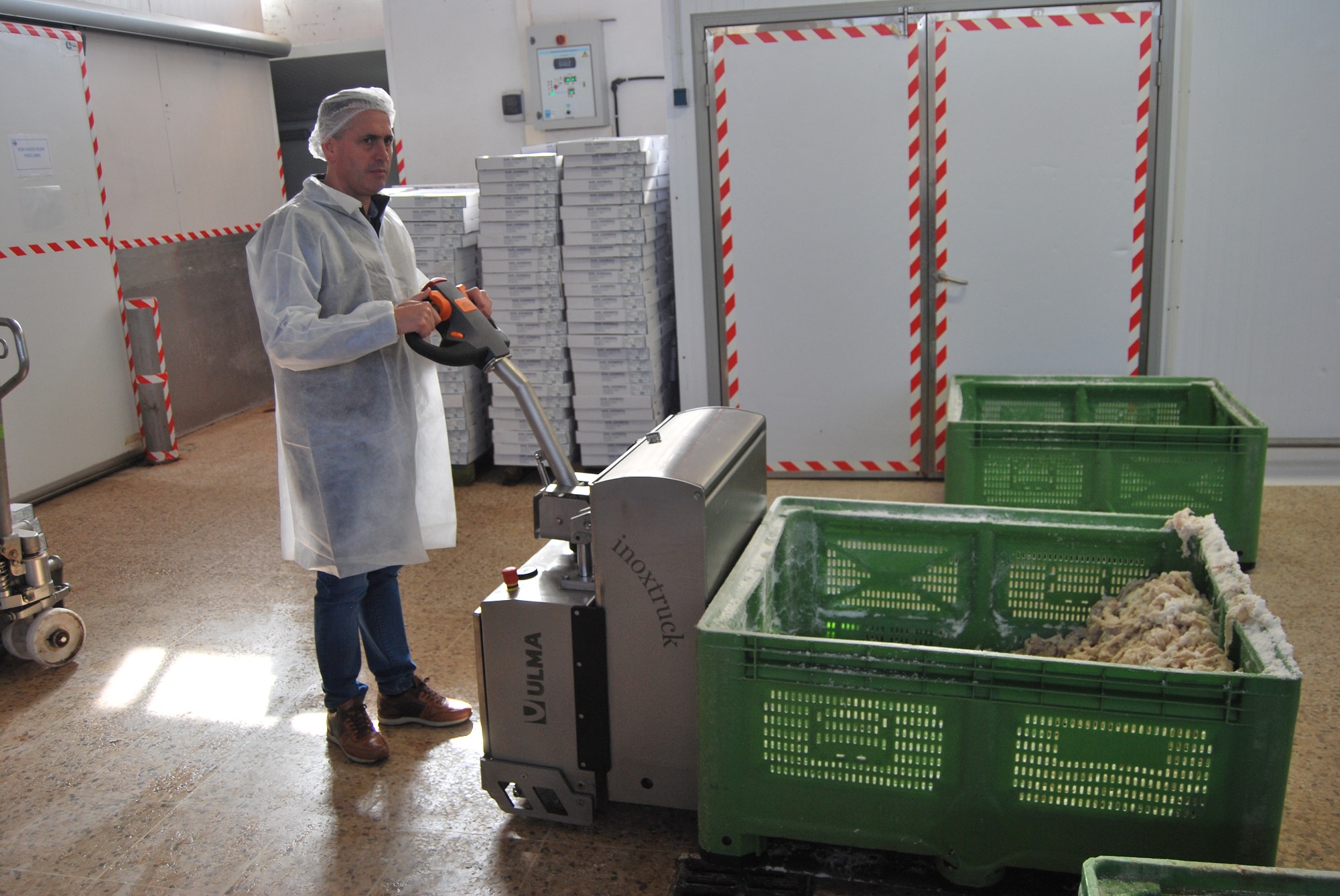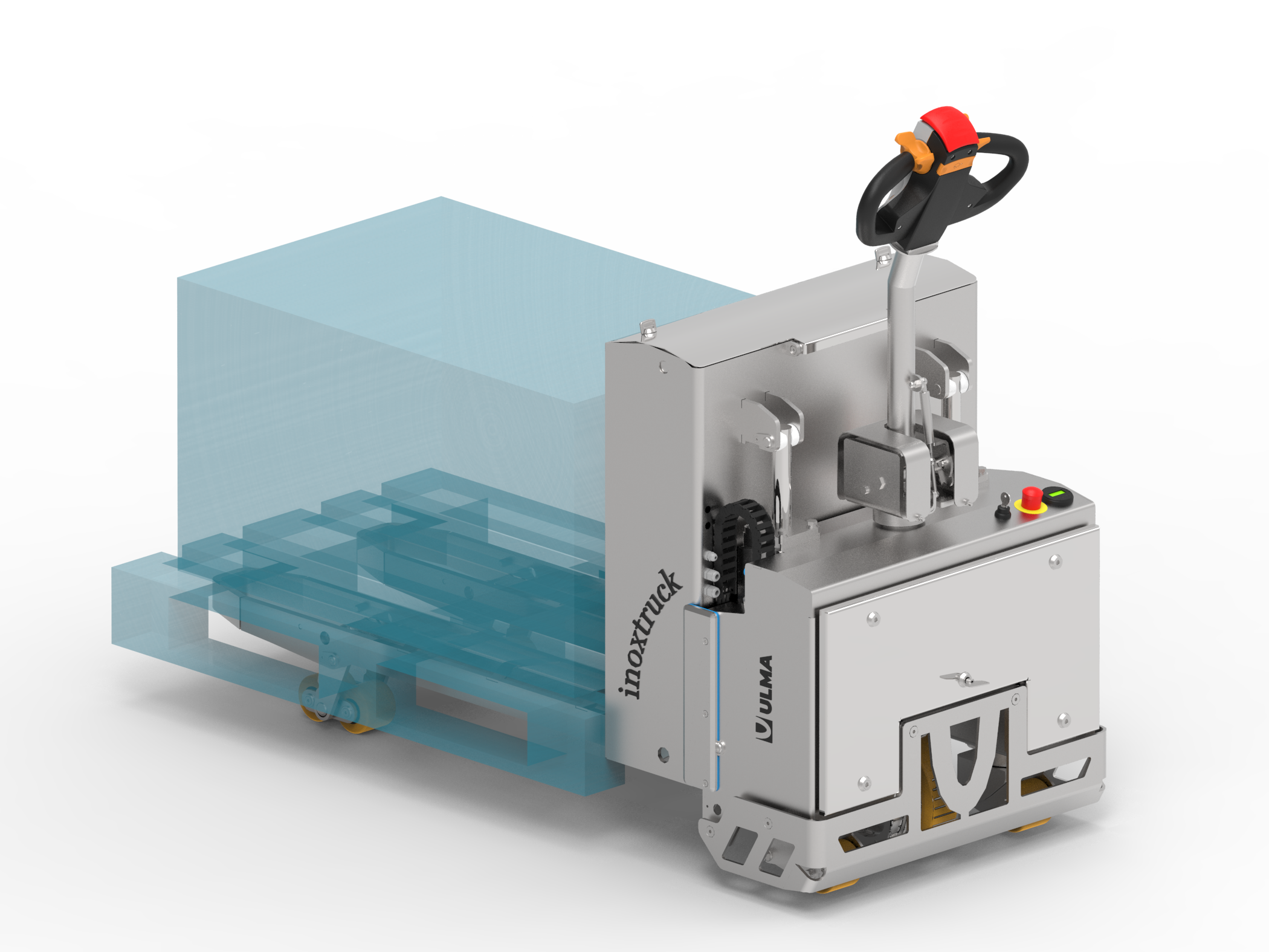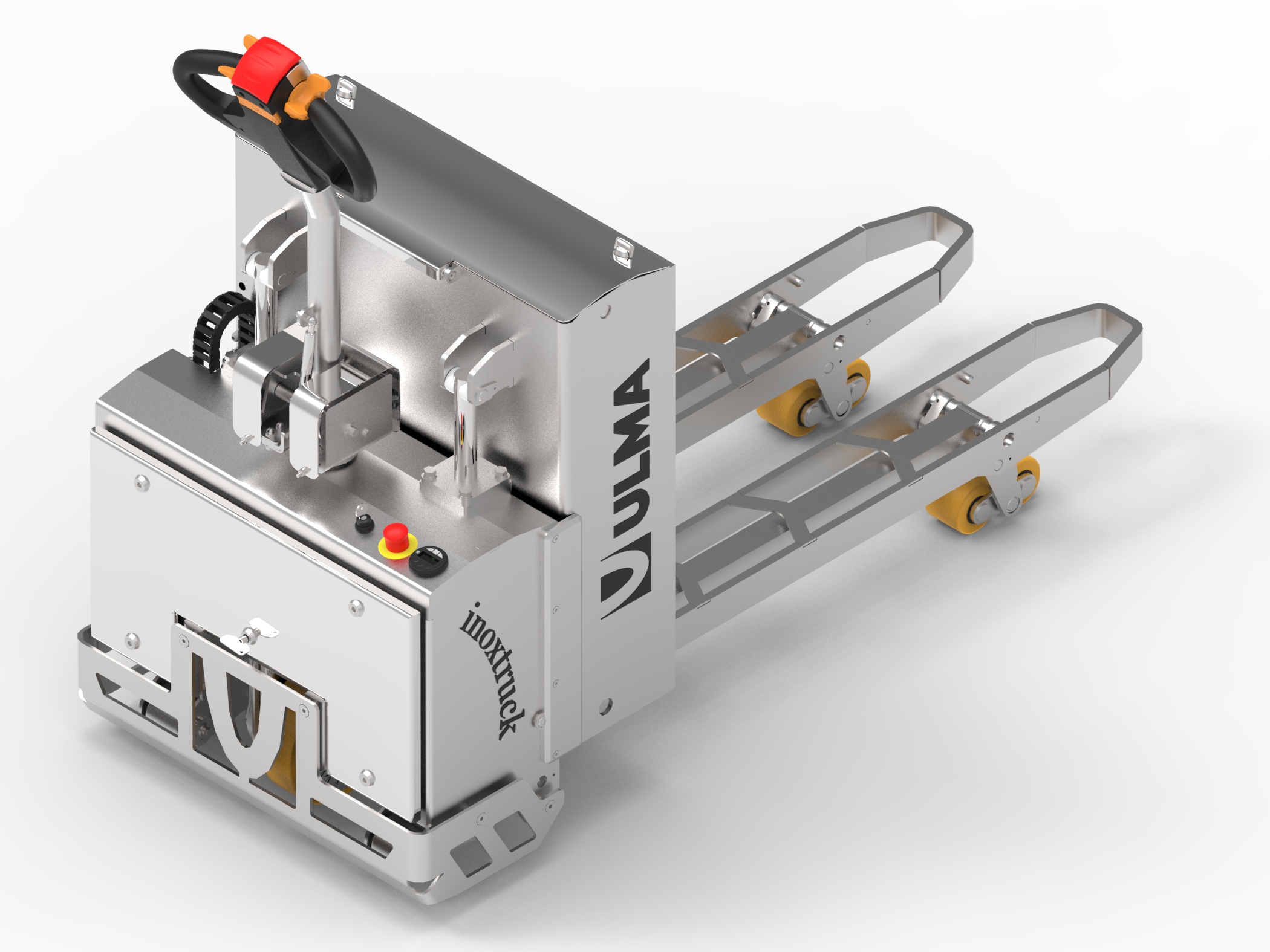 Deze elektrische RVS pallettruck is ontworpen voor de voedings- en farmaceutische industrie.