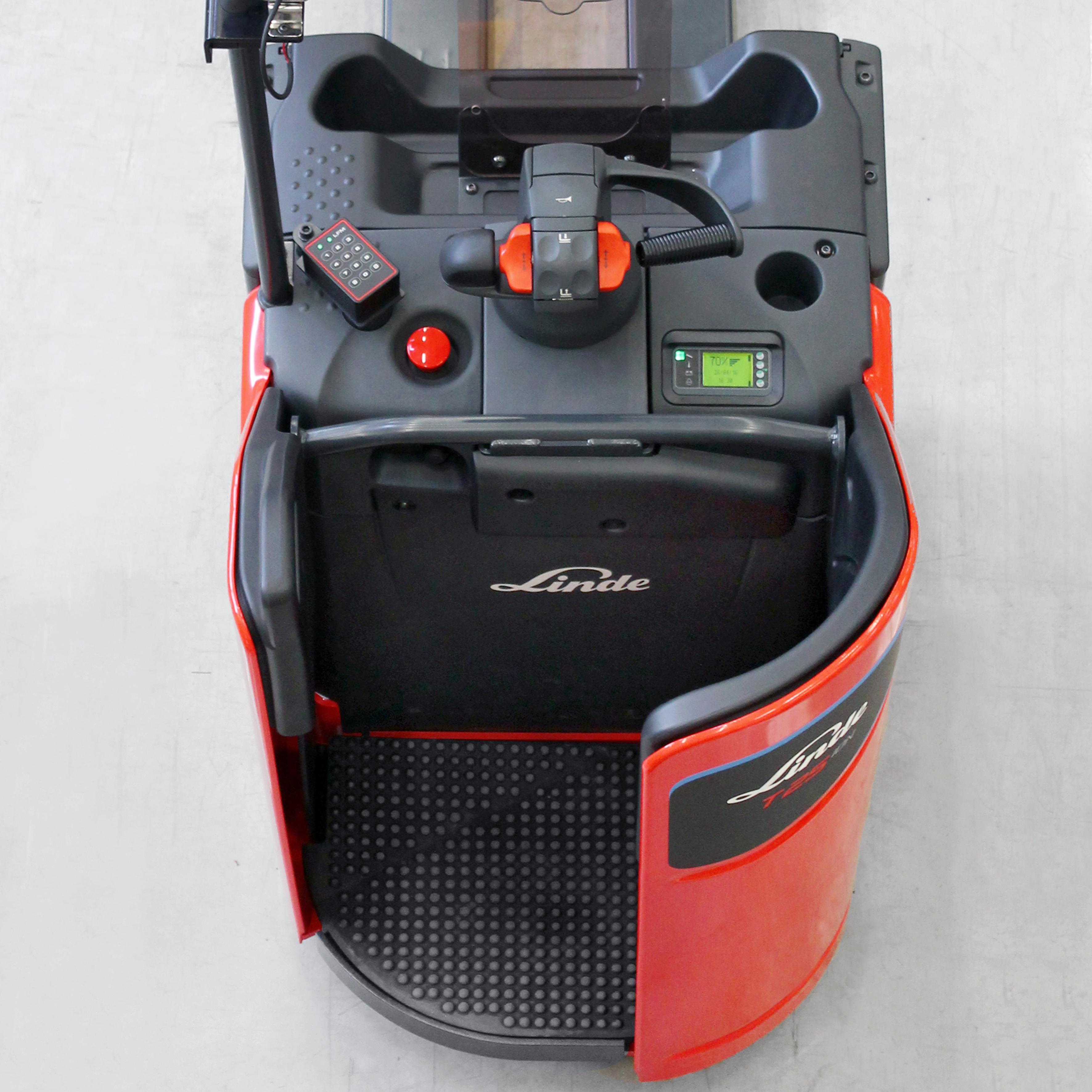 De robuuste en krachtige elektrische pallettruck Linde T20-T25 SP biedt door het vaste sta-platform en de stalen chassis rondom de bestuurder perfecte ergonomie en staat garant voor snelle werkprocessen.