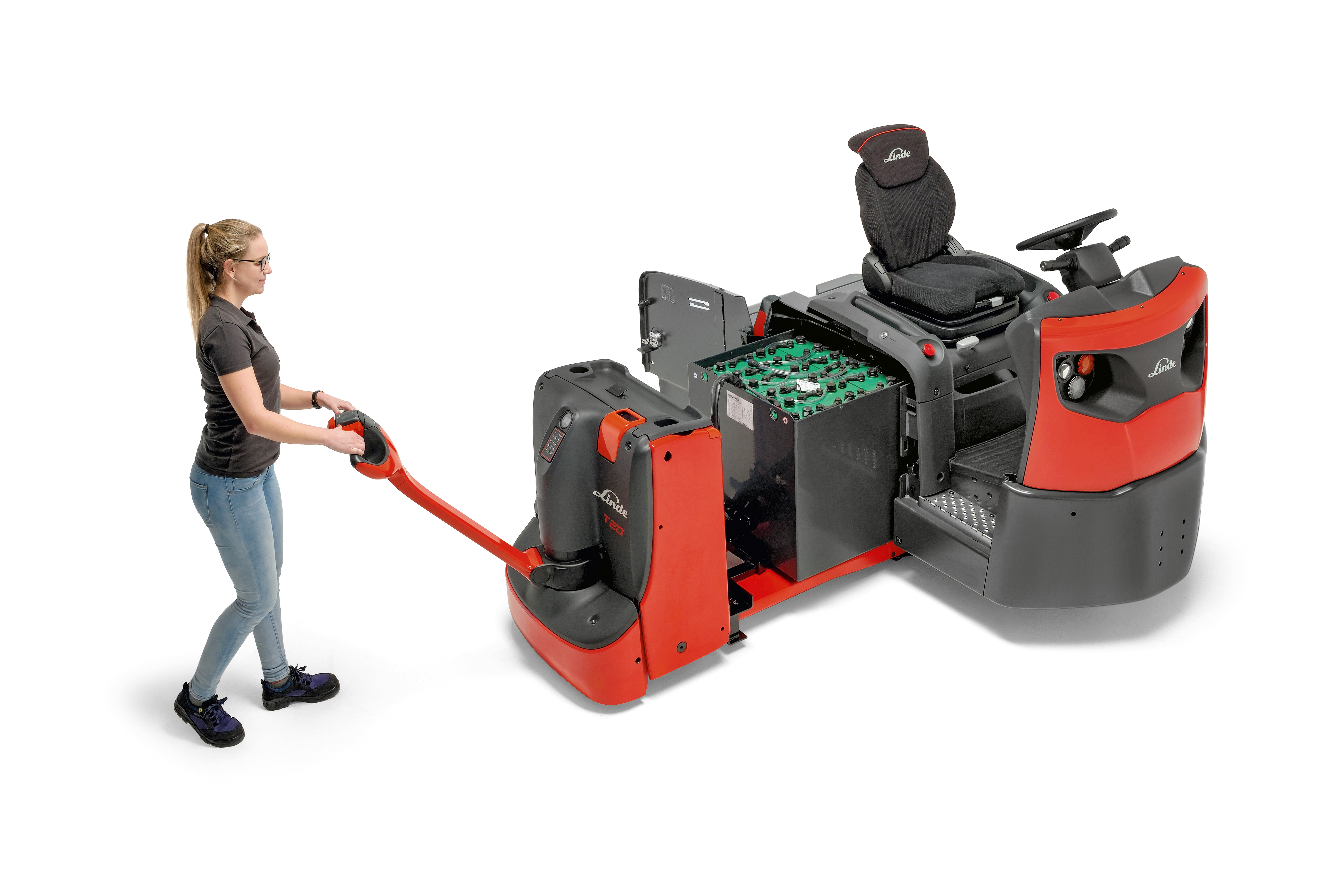 Deze compacte elektrische driewiel trekker in zituitvoering heeft een laag zwaartepunt voor uitstekende stabiliteit. De trekker heeft een volledig geveerd chassis en de batterij kan snel verwisseld worden.