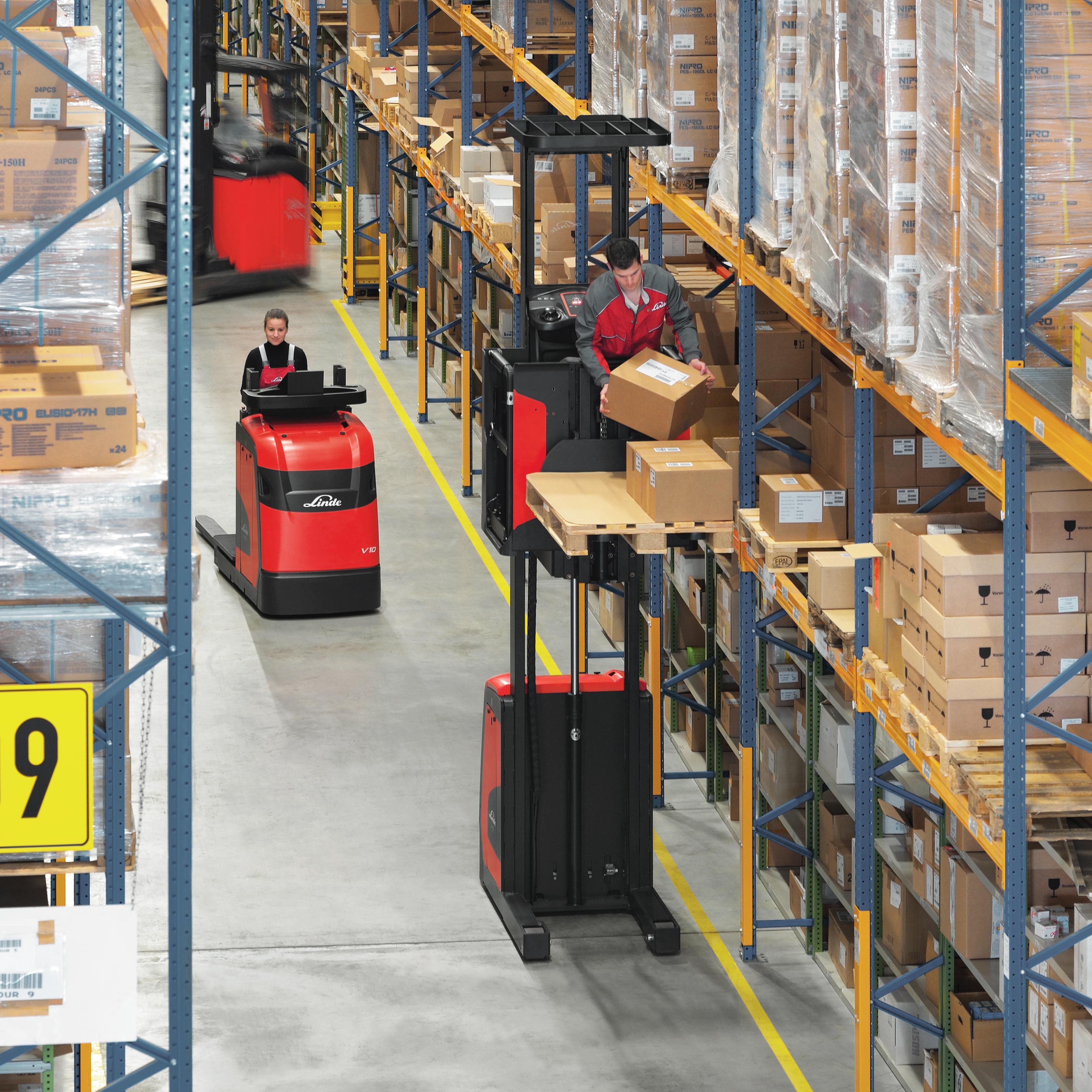 Deze hoogheffende man-up orderverzameltruck is ideaal voor veelvuldig orderverzamelen op 1e en 2e niveau.