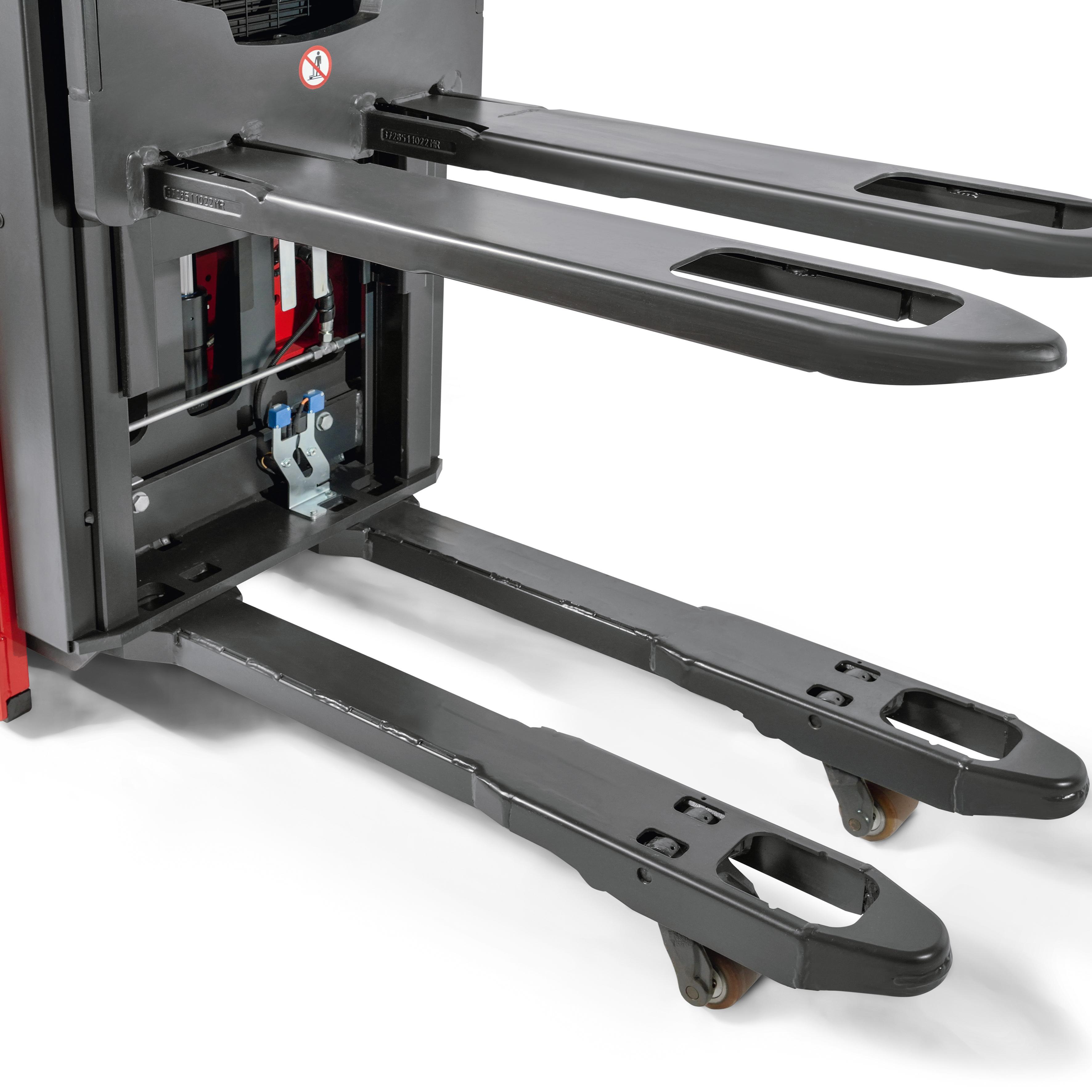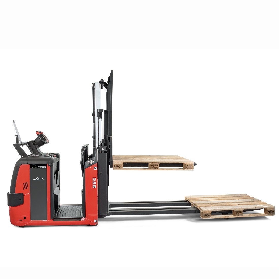 De N20 C LoL orderpicker maakt het ergonomisch vullen van twee pallets in slechts één orderverzamelcyclus mogelijk, dankzij de lange laadarmen en de extra hefbare vork. De bestuurder begint eerst met één pallet op de gewenste hoogte, terwijl een tweede pallet naar keuze verticaal aan de achterkant van de vork wordt vastgezet met een speciale veiligheidsvoorziening.